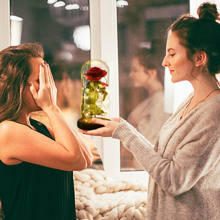 Home.co - LED Foil Rose Glass Dome - Red