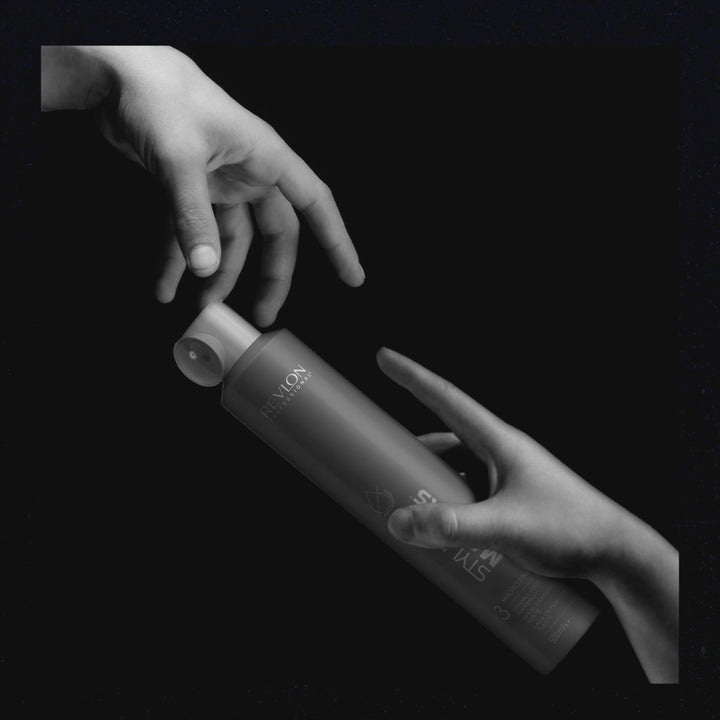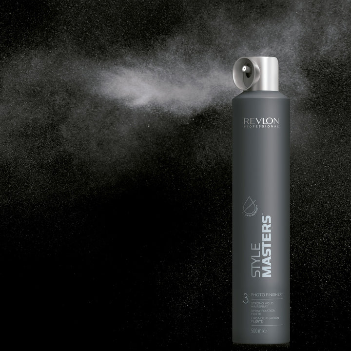 1. Hold Style Masters™ PHOTO FINISHER™ strong-hold hairspray approximately 30 cm from the hair to ensure even application. Quick-drying formula.