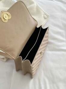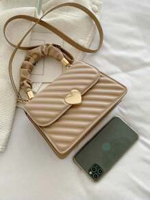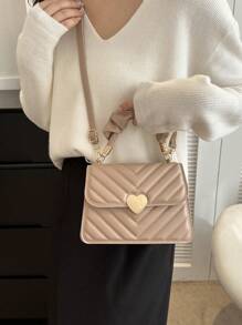 Shein- Lightweight,Business Casual Heart Decor Snap Button Square Bag