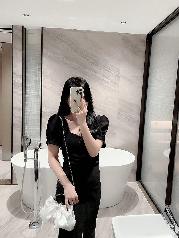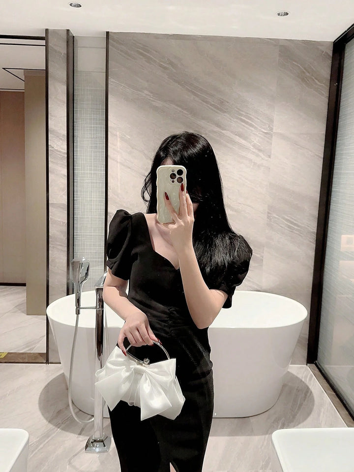 Shein - Lightweight, Business Casual Rhinestone Decor Bucket Bag Mini Drawstring Design