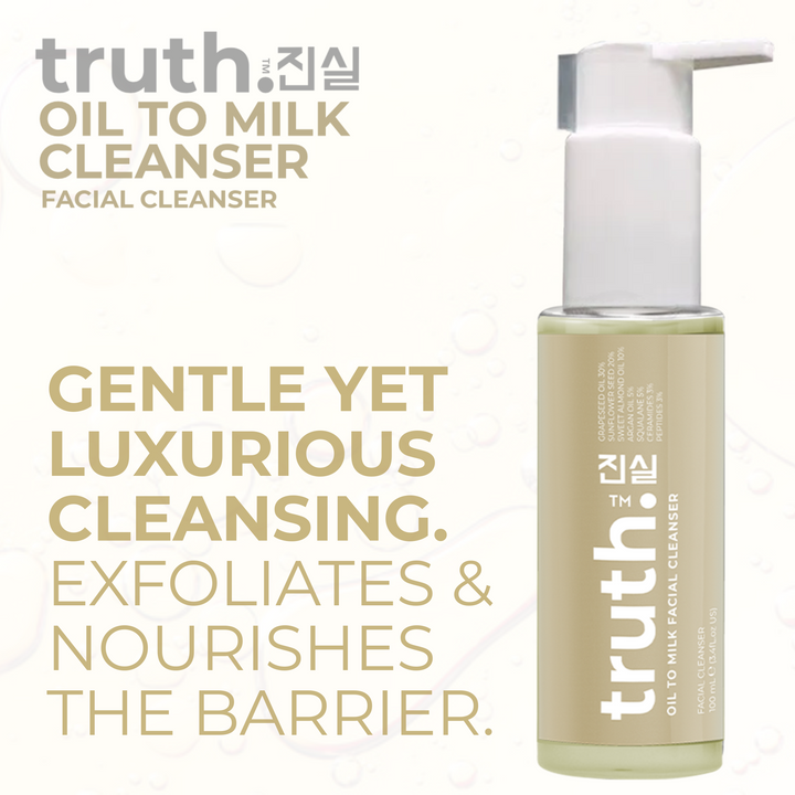 Our Oil to Milk Cleanser is a luxurious, nourishing oil-to-milk cleanser with Grapeseed Oil 30%, Sunflower Seed Oil 20% and Almond Oil 10% that gently dissolves dirt, wastes, and makeup residues that have collected on the skin and smoothens the skin without clogging the pores.