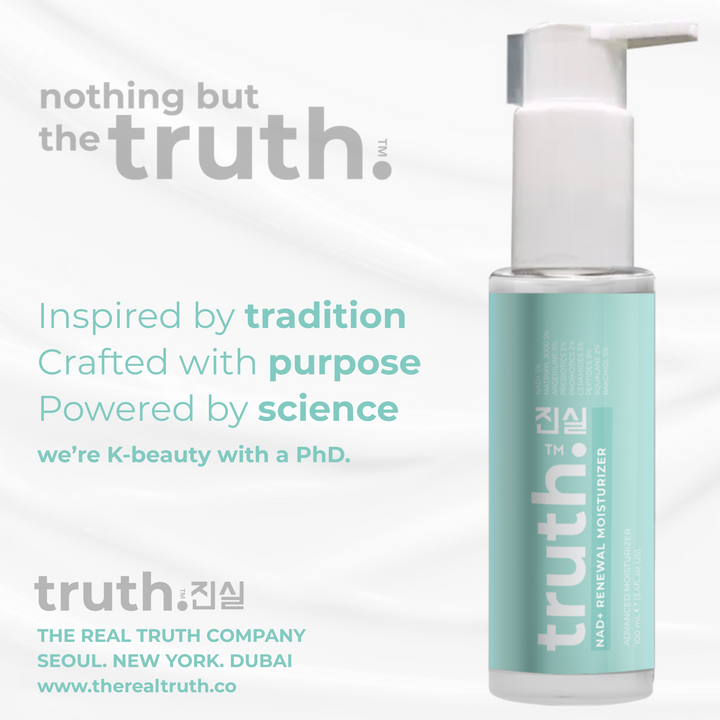 Our NAD+ Renewal Advanced Moisturizer combines the antioxidant power of NAD+5%, Bakchiol 5%, Probiotics 2% and Prebiotics 2% to reverse signs of aging, deeply hydrate and strengthen the skin barrier.