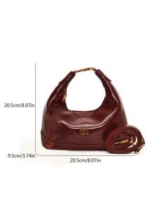 Shein - Retro Waxed Leather Burgundy Red Handbag
