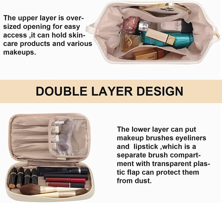 Home.co -Double Layer Leather Cosmetic Pouch (Random Color)