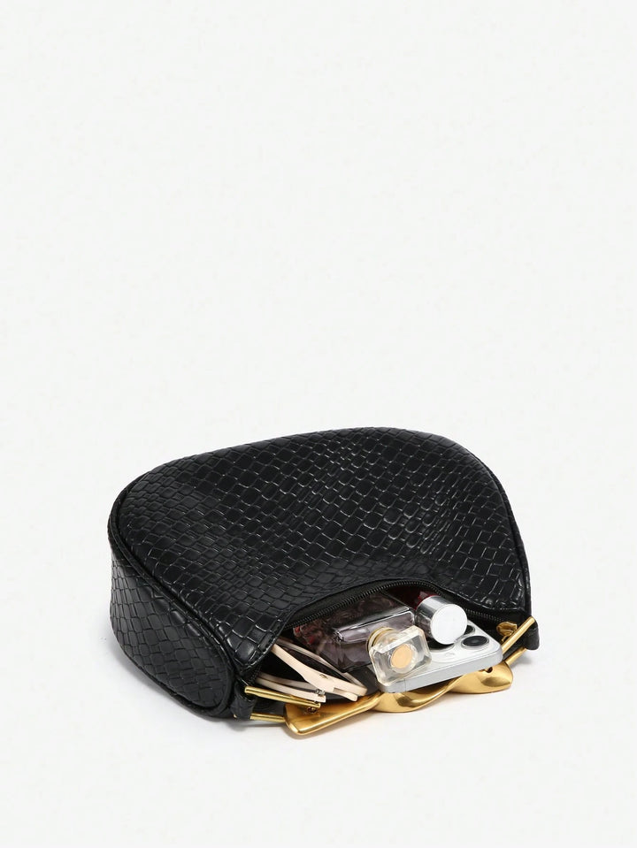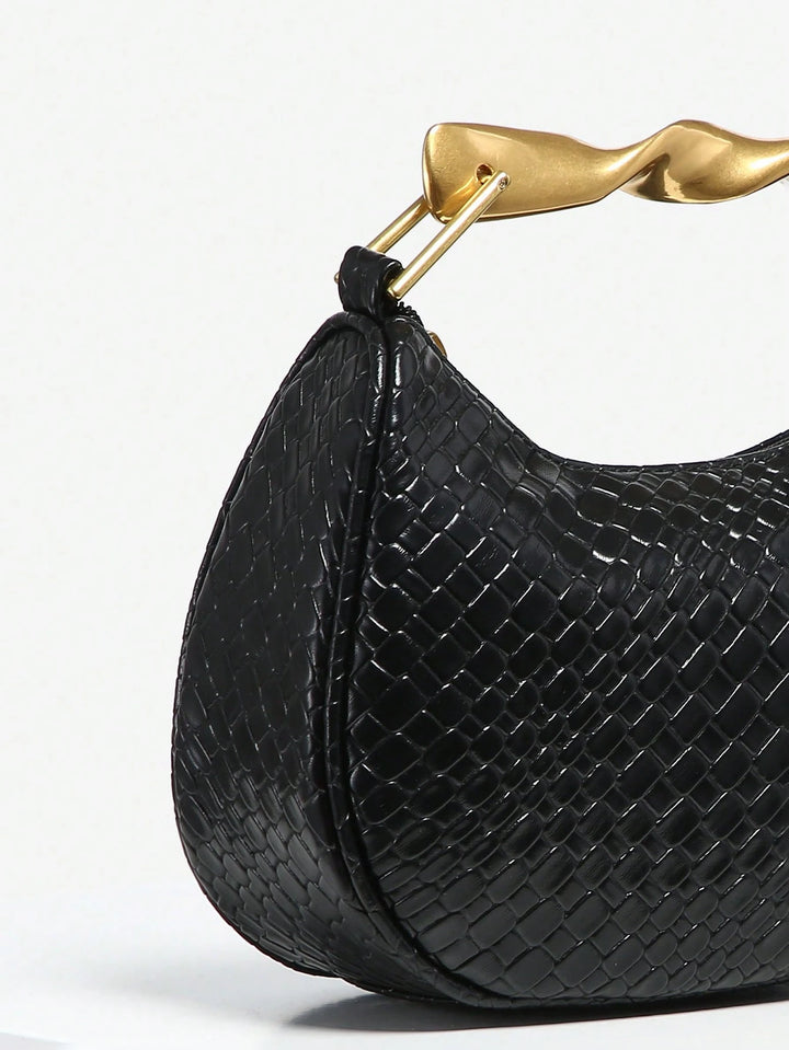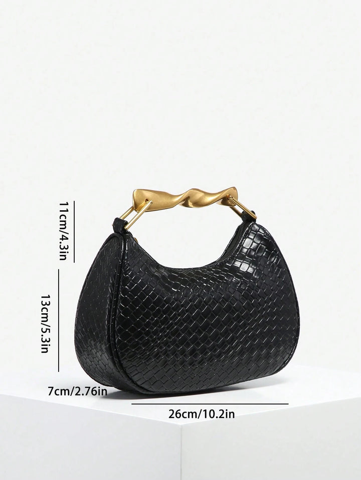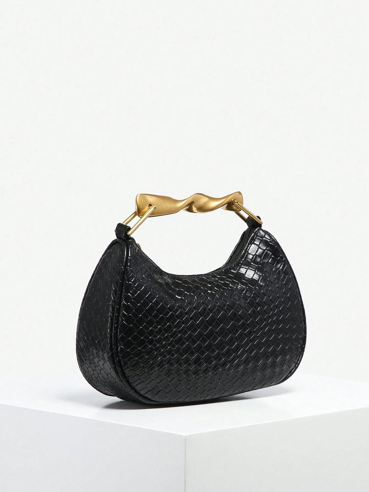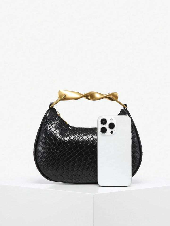 Shein - 1pc Women's Retro Minimalist Casual Metal Handle Decor Soft Faux Leather