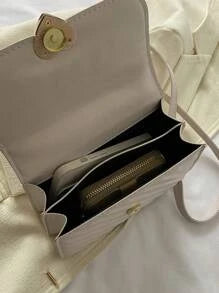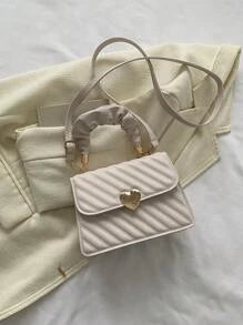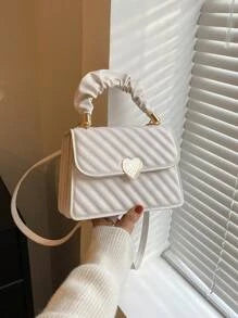 Shein- Lightweight,Business Casual Heart Decor Snap Button Square Bag
