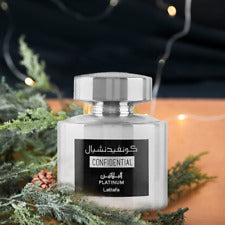 Confidential Platinum by Lattafa Perfumes is a Woody Aromatic fragrance for men. This is a new fragrance. Confidential Platinum was launched in 2022. Top notes are Citruses, Cypress, Bergamot and Black Pepper; middle notes are Sea Notes, Woodsy Notes and Olibanum; base notes are Ambergris, Musk, Labdanum and Moss.
