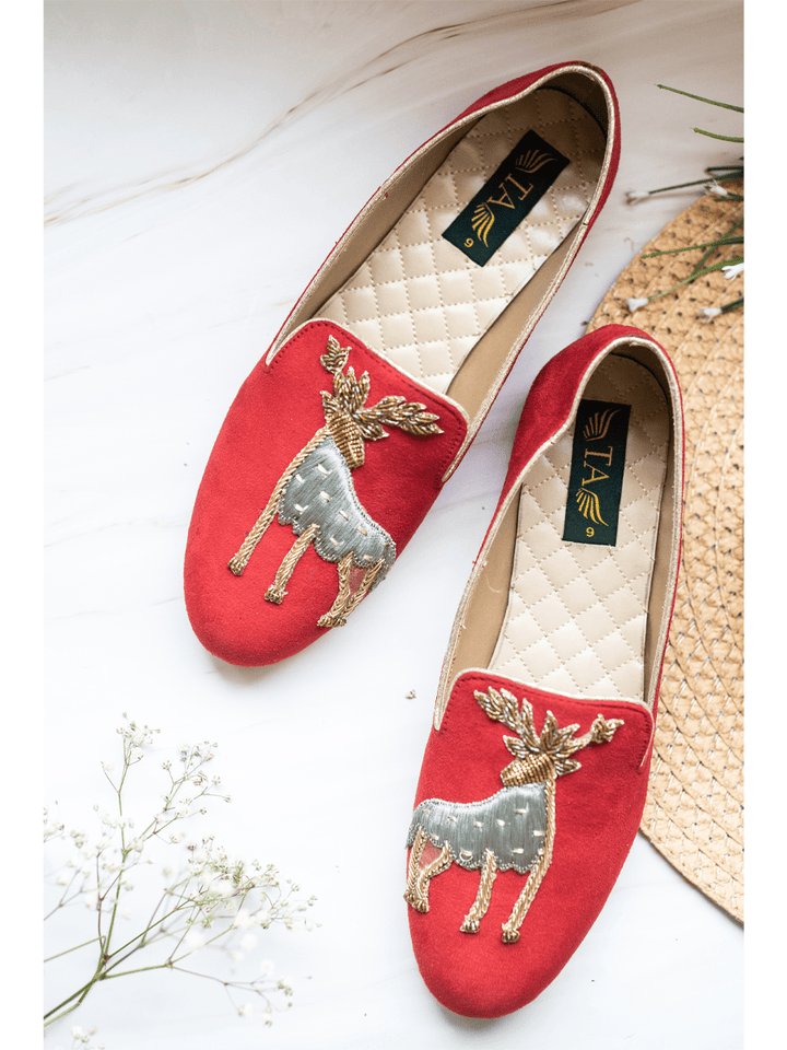 Tauheed Ansari Women Black Suede Velvet Hand Crafted Pumps Red
