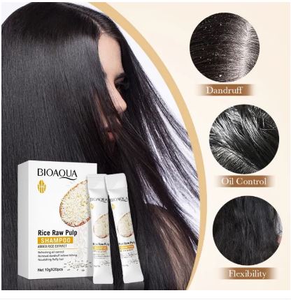 Bioaqua Pack Of 20pcs Rice Raw Pulp , Added Rice Extract Shampoo 10g Sachet For Girls and For Women BQY96520