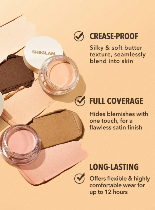 Forget the photo editing software and opt for this IRL quick solution instead! Featuring a high coverage, buttery texture, and velvet matte finish, our SHEGLAM Rapid Retouch Cream Concealer melts on your skin, giving it a silky and luxurious skin-like feel! Its hydrophobic and lipophilic properties make it the perfect water-resistant, non-cakey, and transfer-proof full-coverage option for all-day wear.
