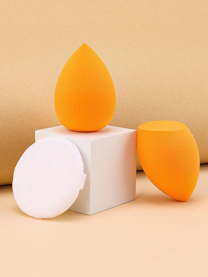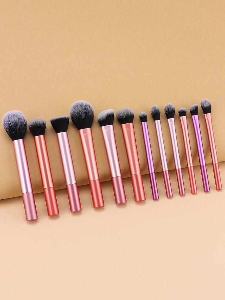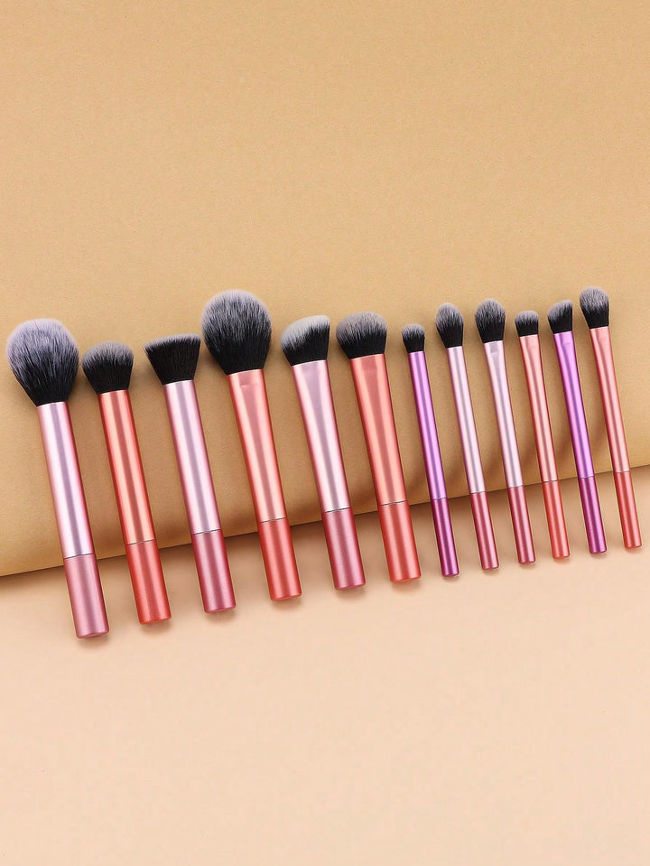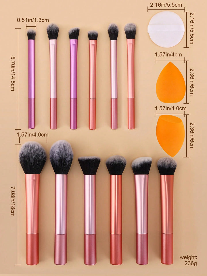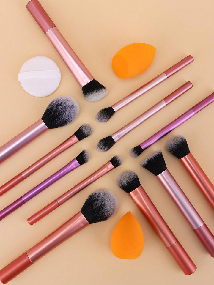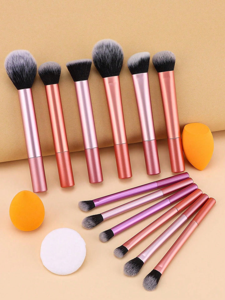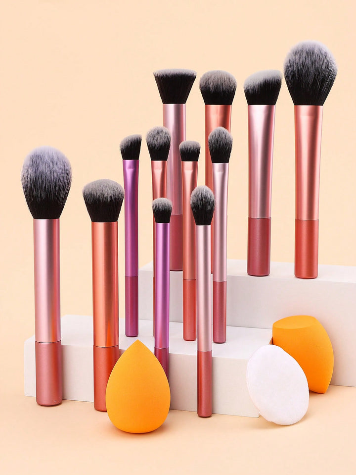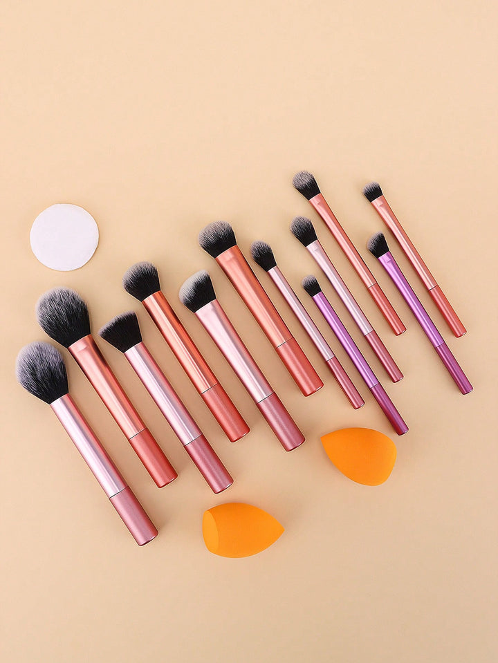 Shein - 12pcs Makeup Brush Set Including Powder Brush, Blush Brush, Concealer Brush, Eyeshadow Brush & 2 Orange Makeup Sponges & 1 White Powder Puff, Suitable For All Skin Types