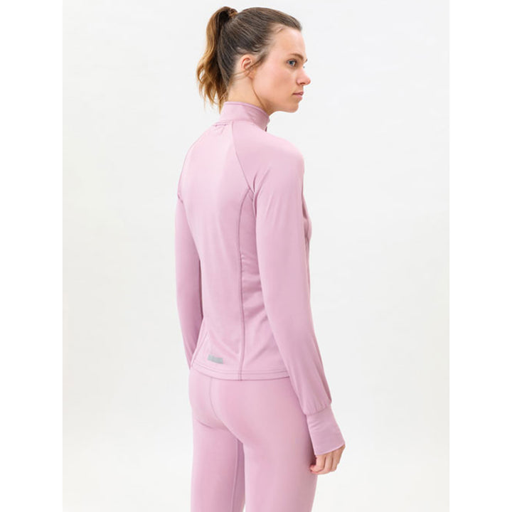 Sporty T-shirt with long sleeves and a high collar with a self-blocking zip. The slightly loose fit and technical fabric allow you to move around with total freedom of movement. The ribbed elastic cuffs feature thumb holes to protect from the cold and keep your sleeves from riding up.