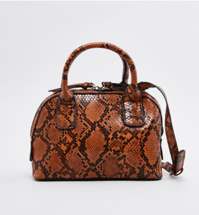 Max Fashion- Reptilian Textured Dome Bag with Twin Handle Straps