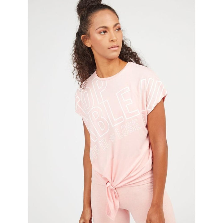 Max Fashion- Slogan Print Round Neck T-shirt with Knotted Detail