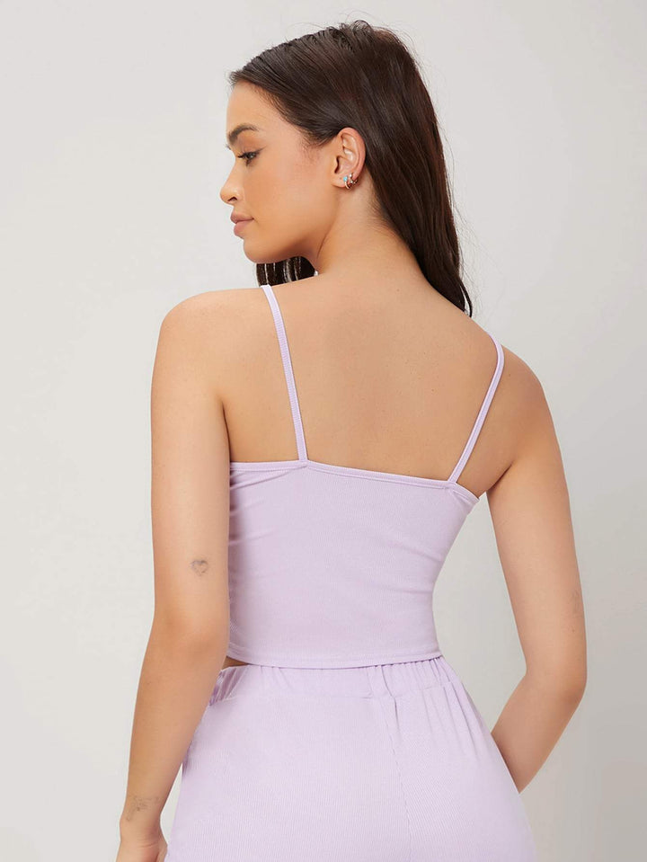 Shein- 1pc Solid Rib-knit Comfortable Lounge Cami Top