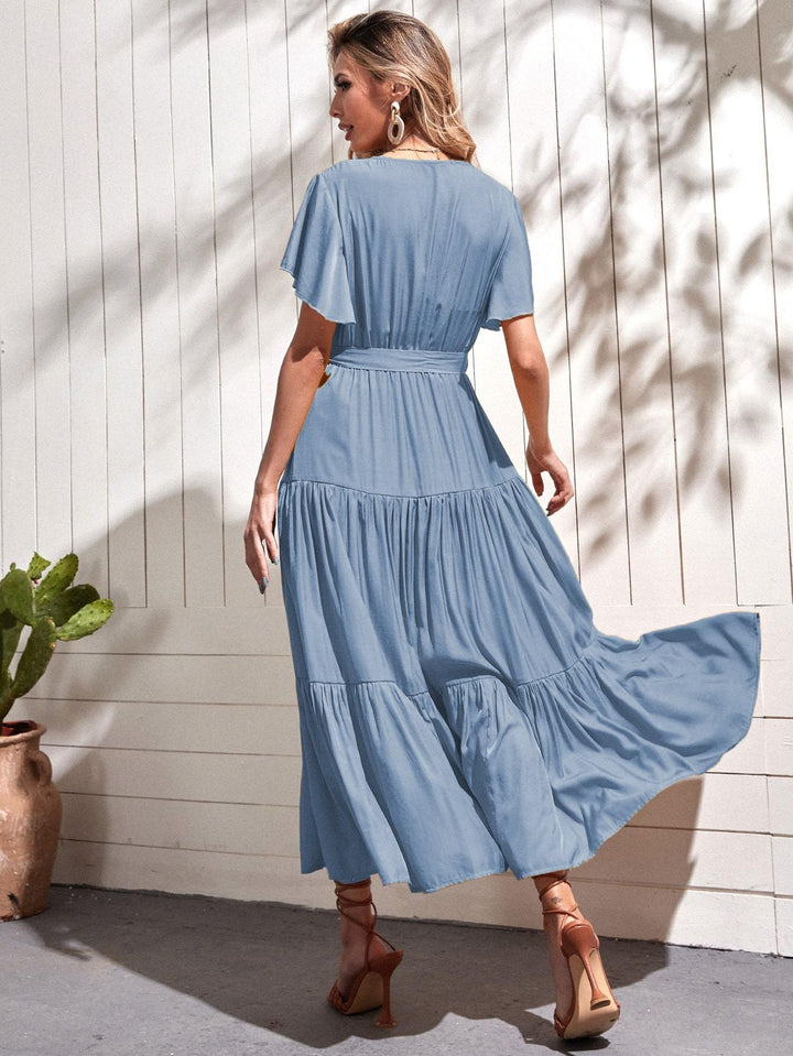 Shein- Butterfly Sleeve Ruffle Hem Belted Dress