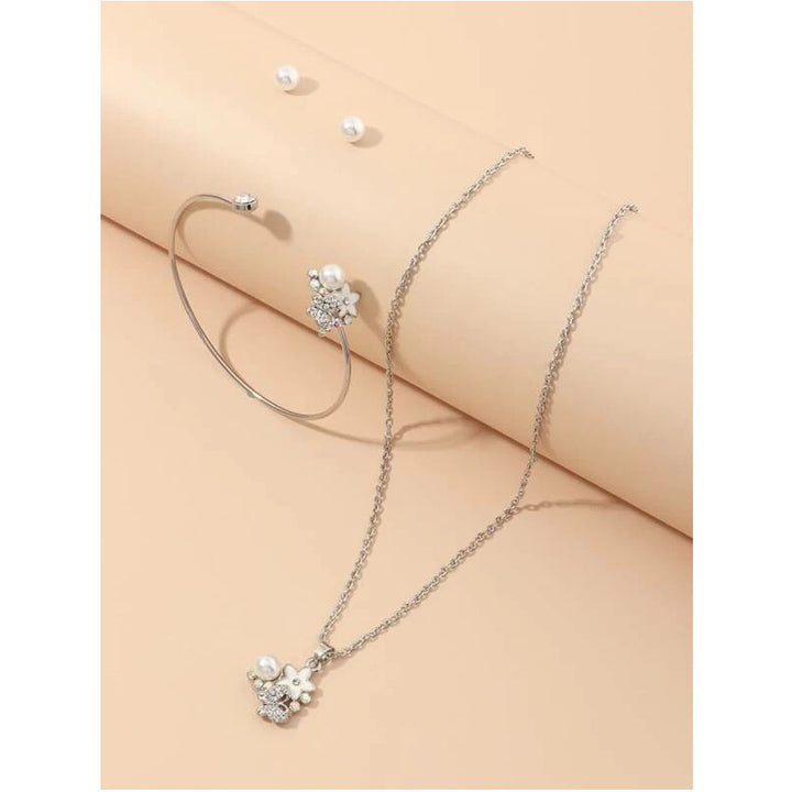 Shein- Girl'S Jewelery Set With Flower Decoration 4 Pieces