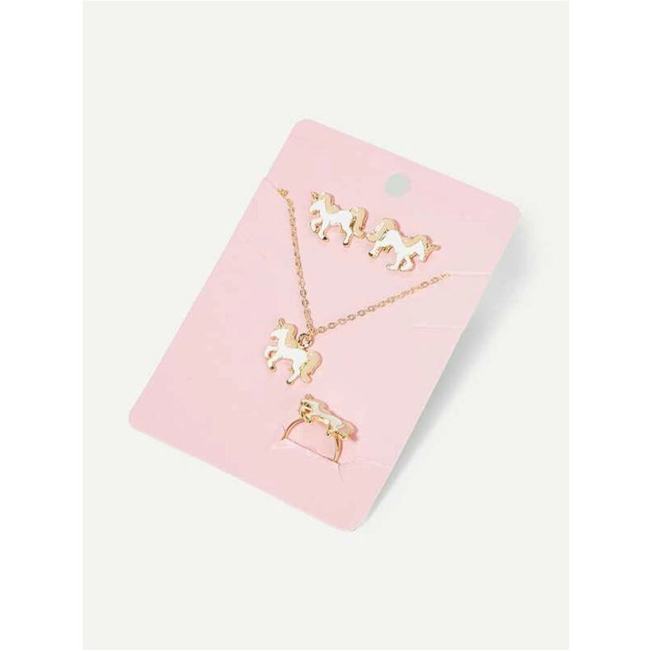 Shein- Girls Unicorn Pendant Necklace, Earrings and Ring Set 4pcs by Bagallery Deals priced at 678 | Bagallery Deals