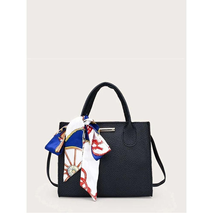 Shein- The Black Pebble pattern shoulder bag with scarf decor