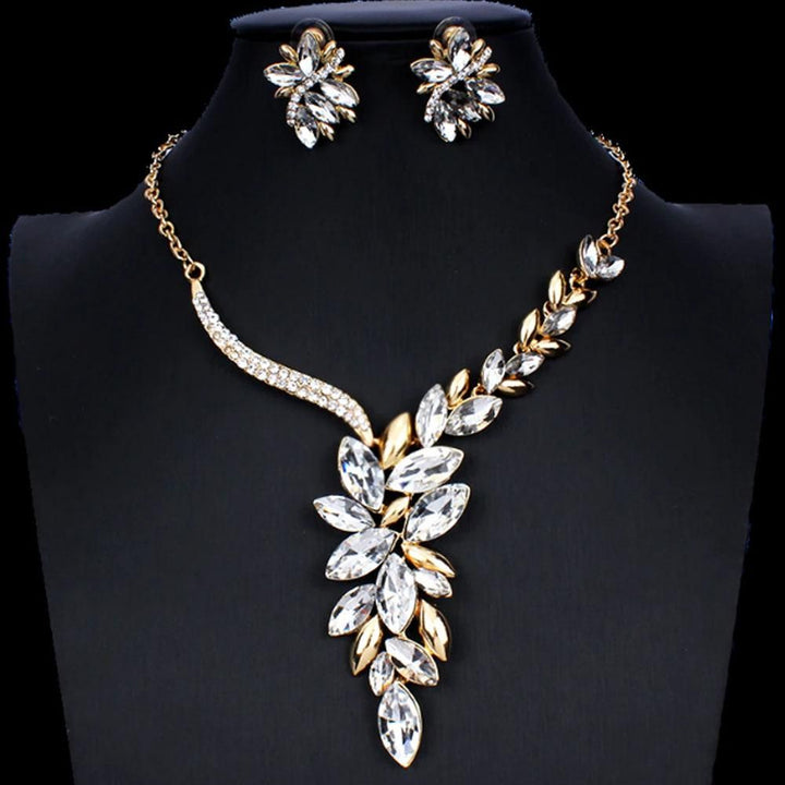Dama Rusa Pearl Golden Crystal Jewellery Set for Women - TM-ER-29