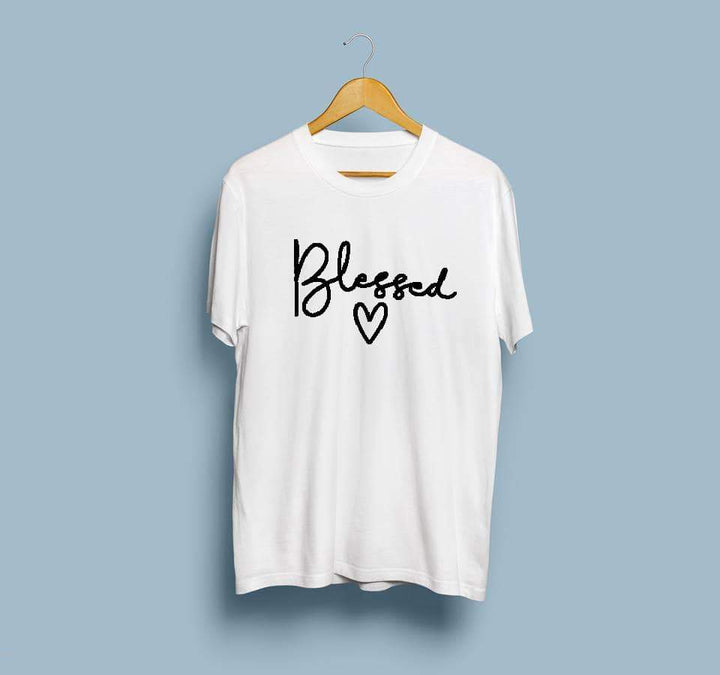 Wf Store- Blessed Printed Half Sleeves Tee - White