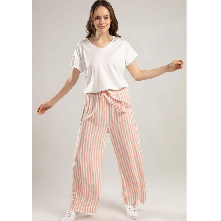 Y-London- Women Elastic Waist Wide-Cut Striped Trousers 6470 Y20S110-6470Running