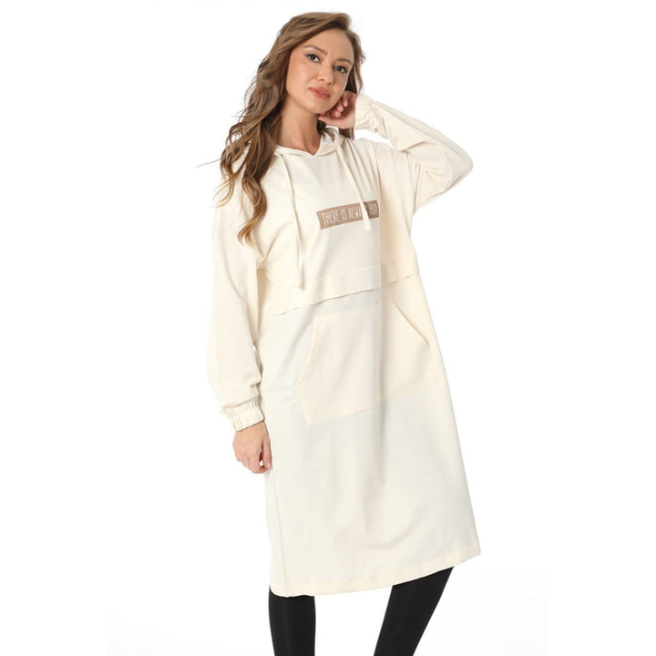 Zincirmoda- Printed Long Oversize Sweat - Beige 1KB60G00055